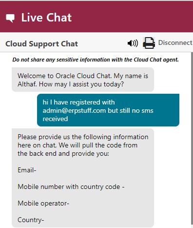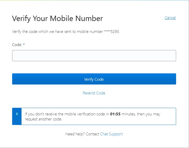 7. If due to some reason you have not received code you can request to resend or you can have a chat and ask for code like below,