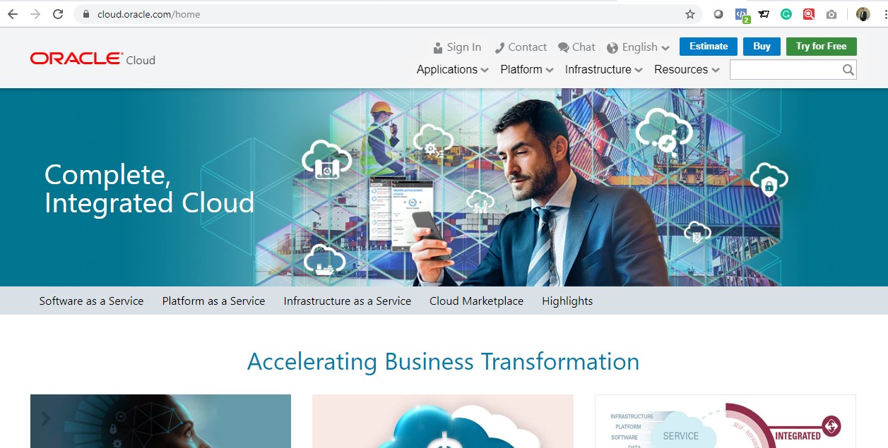 1. Open the link https://cloud.oracle.com and click green bottom on top right corner Try For Free,