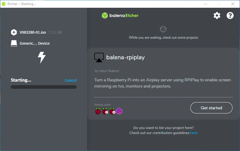 4. I used Etcher as it is open source while Rufus was giving some missing files message,