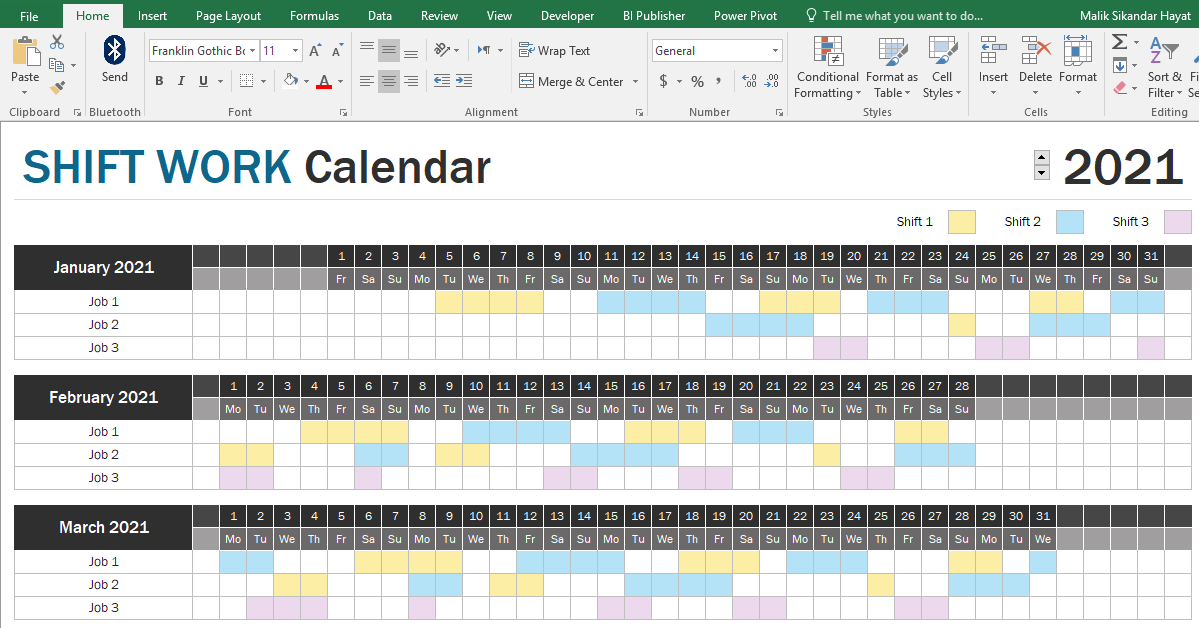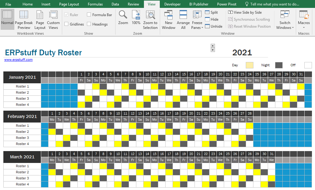1. To determine On which Date Day or night Duty i.e if I want to check on 7th Jan 2021 I will have off or day duty or night duty I will see that above sheet to make plans accordingly
